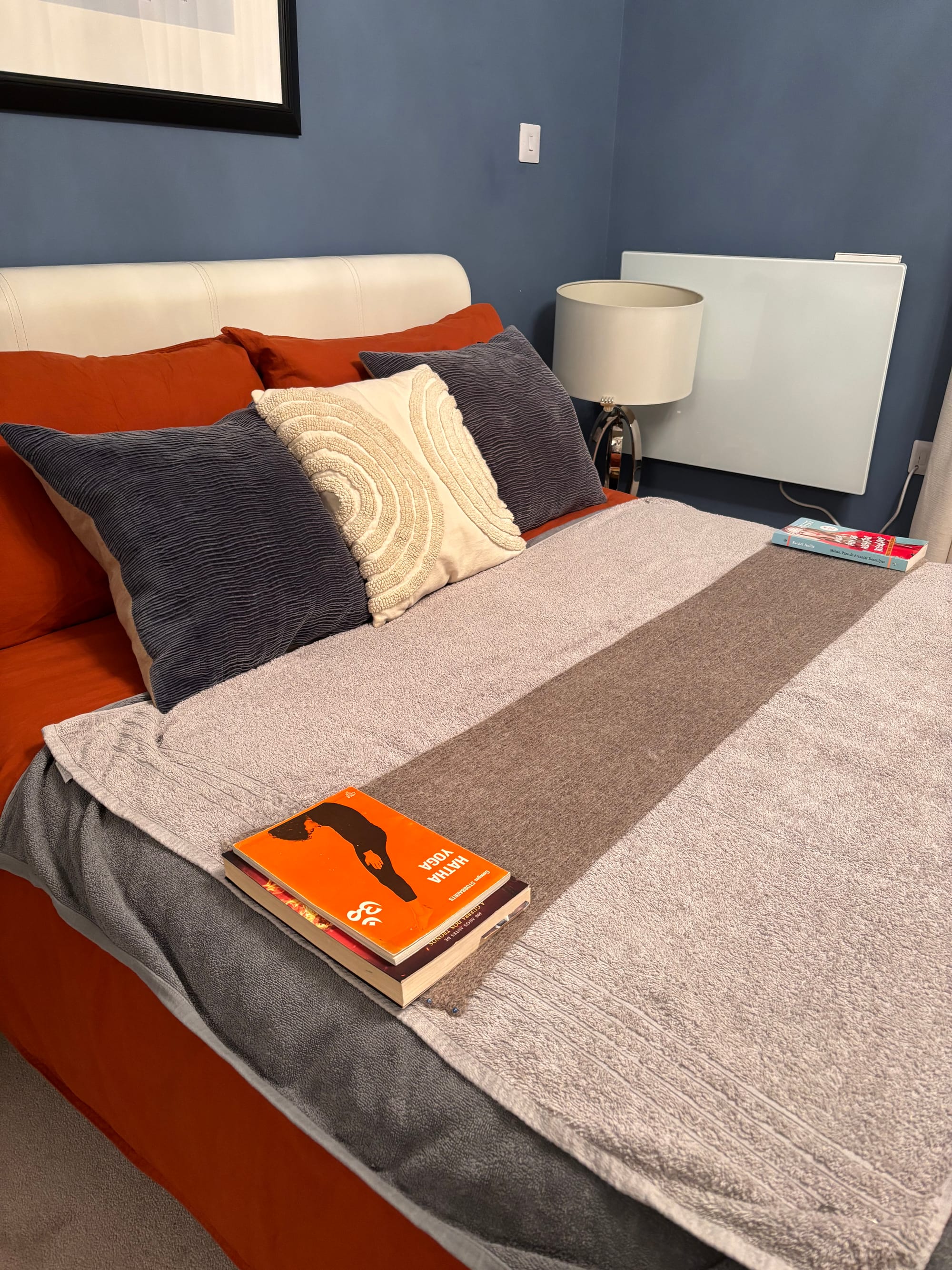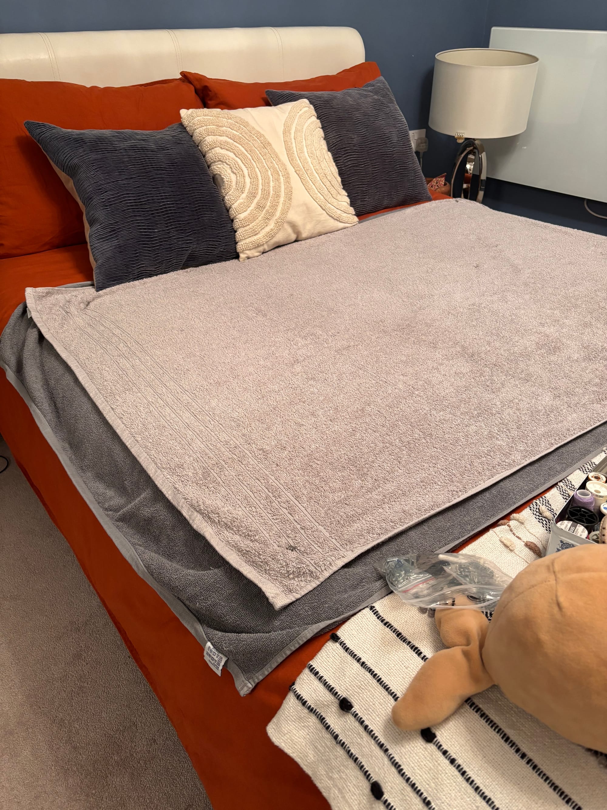 So the only good options were: the floor (not using pins but vase pots to hold the towels underneath in place), carpeted floor (where you can use pins), an iron board (which is probably not long enough) and the bed.